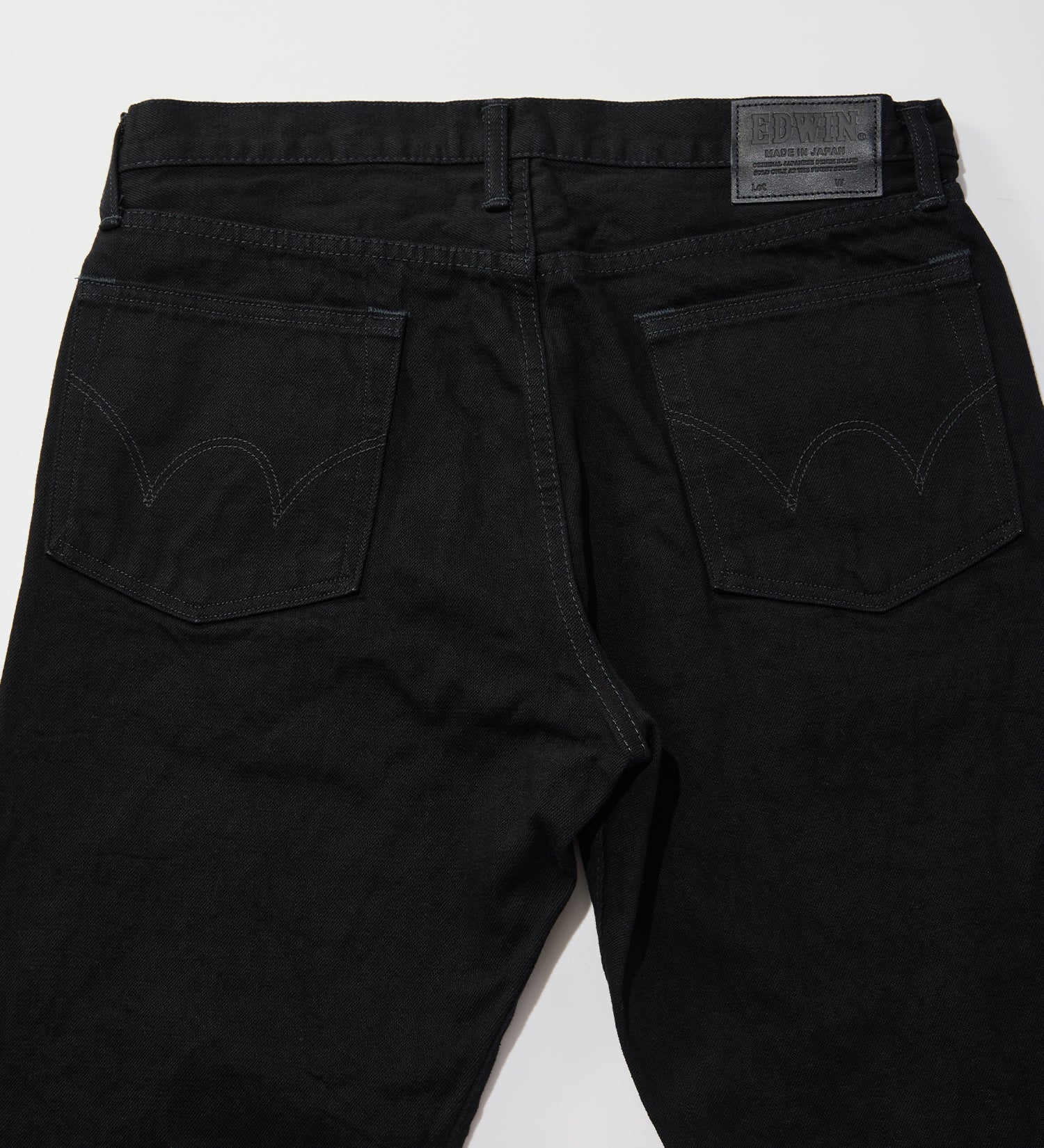 バックポケットはコンパクトで均整の取れた形状、Wステッチは縫製糸と同じ黒の糸を使用し、シックな雰囲気を演出している。
