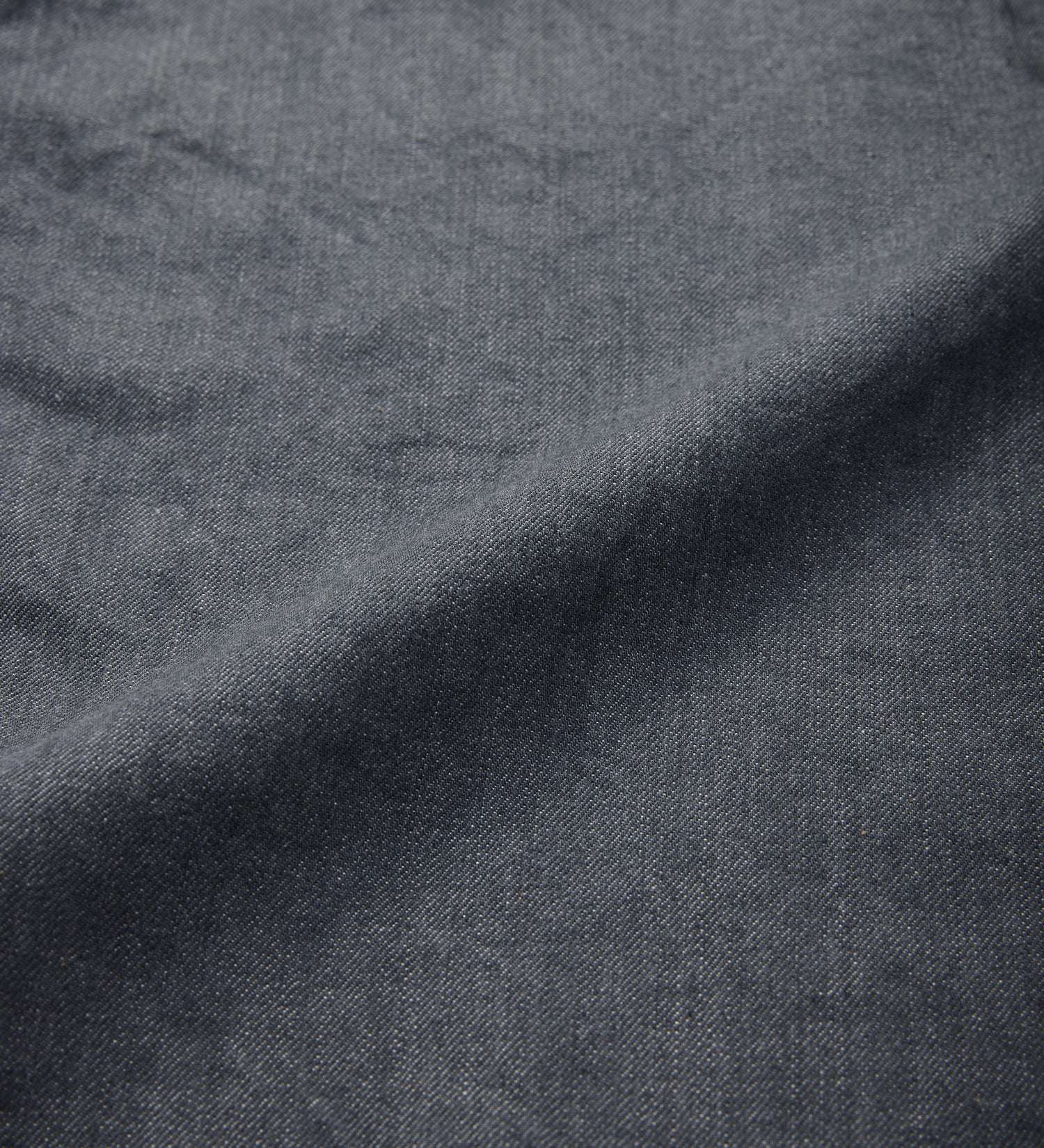 経糸はグレーの硫化染料でロープ染色を行っているため、通常のデニムとは違った色落ちを楽しめるのが特徴。