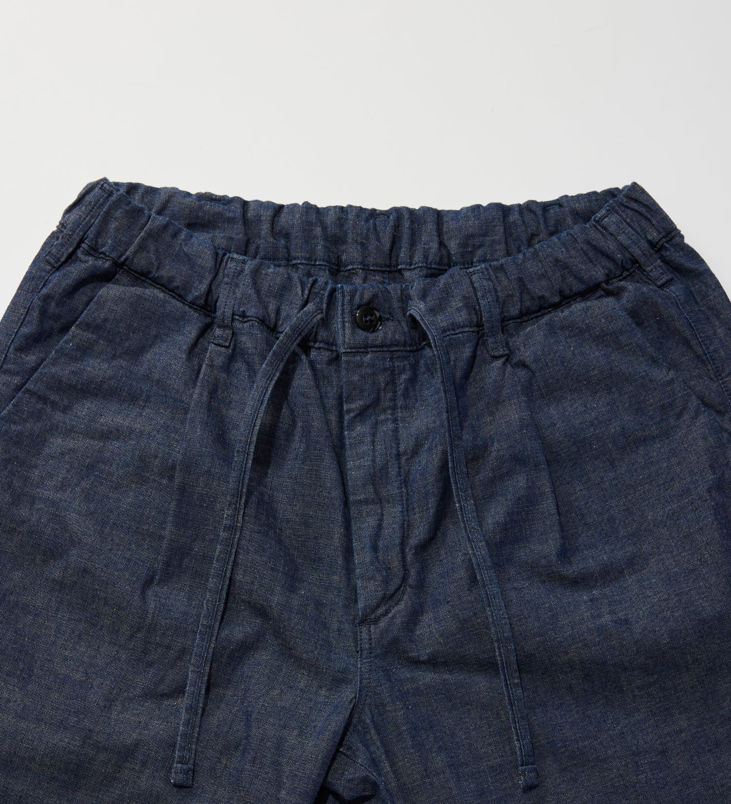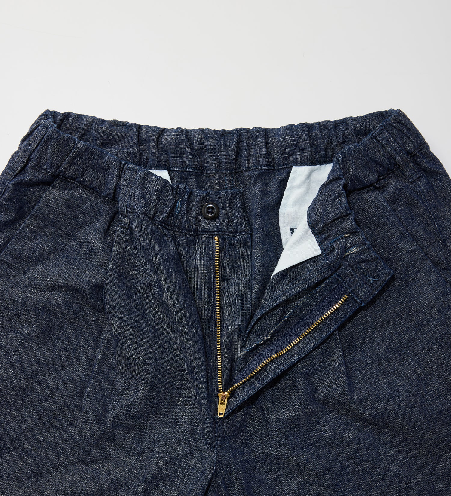 ウエストゴムと紐の仕様でイージーパンツらしい緩さに加え、タックが入っているため綺麗なシルエットになってます。