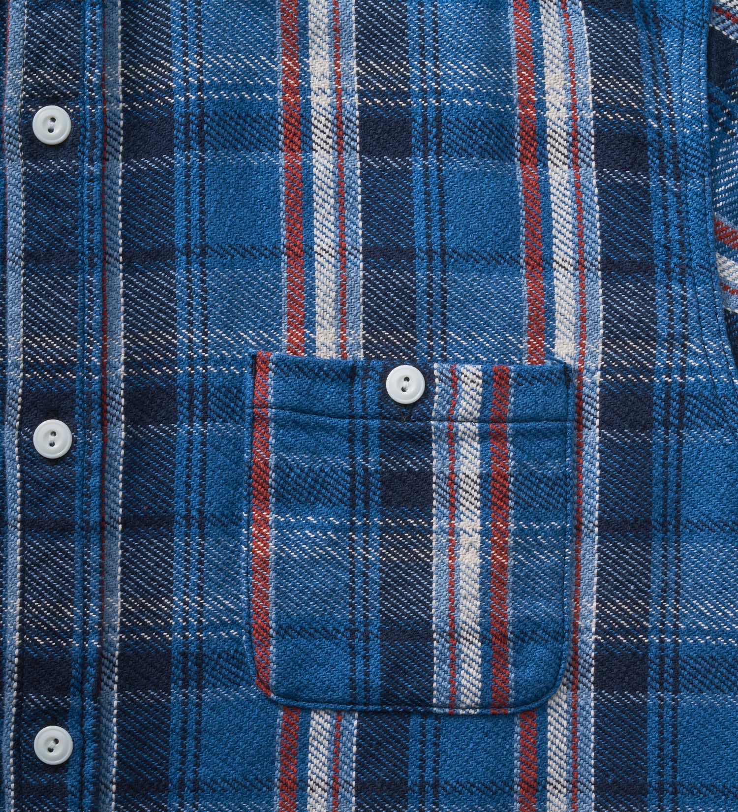 素材は3本の糸を引き揃えゆっくりと織り上げた柔らかい肌触りのツイルチェックを使用。
