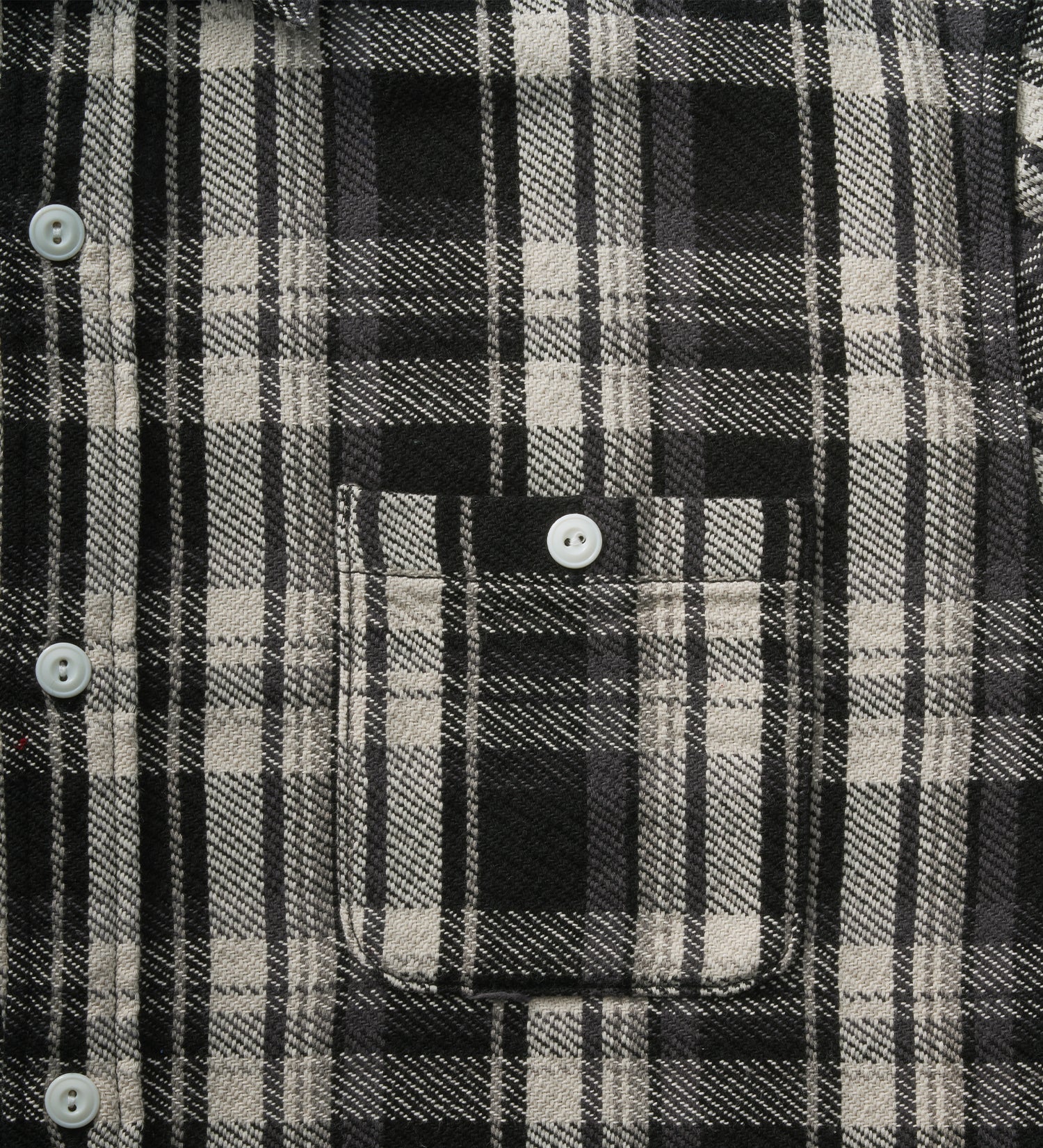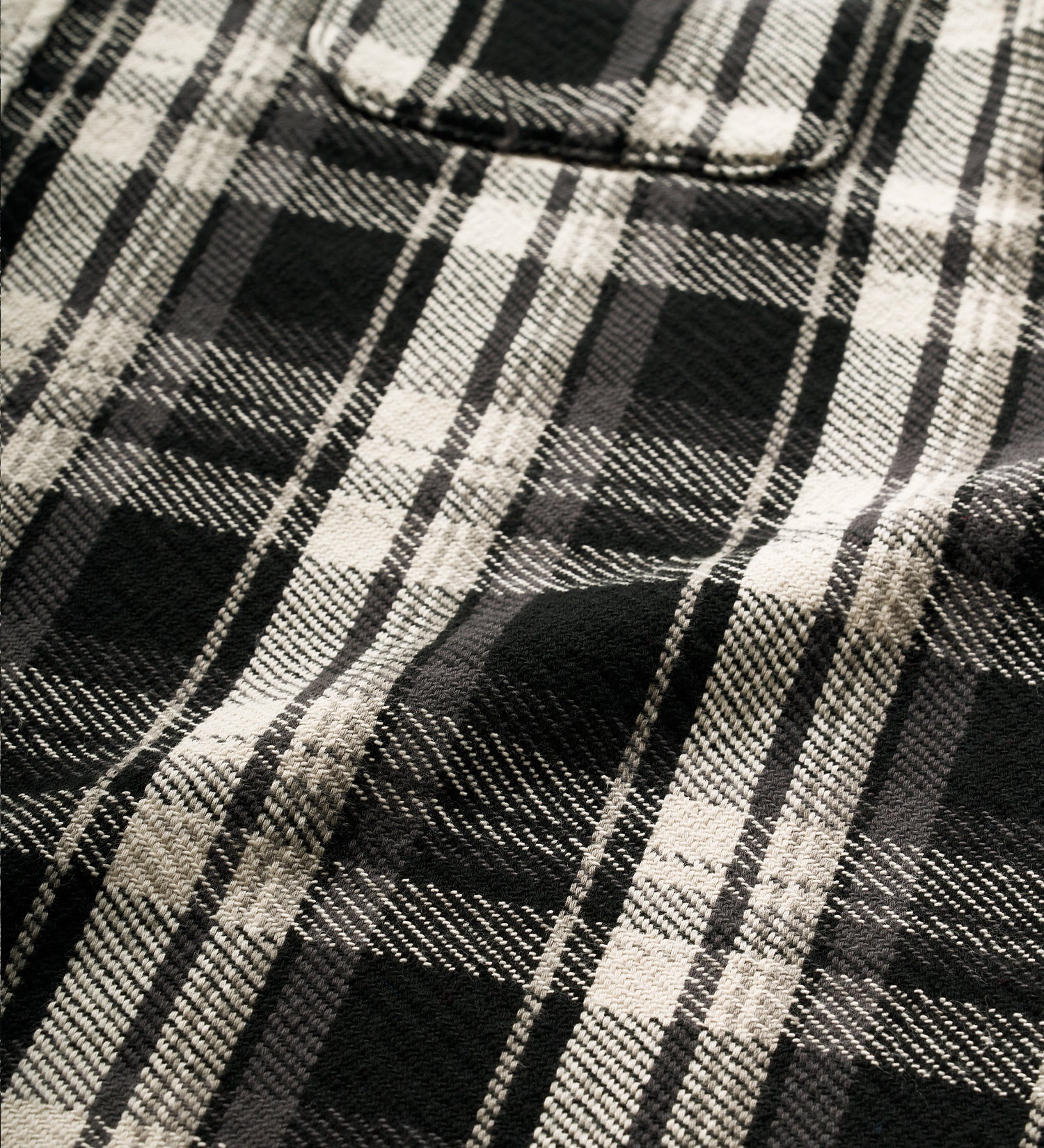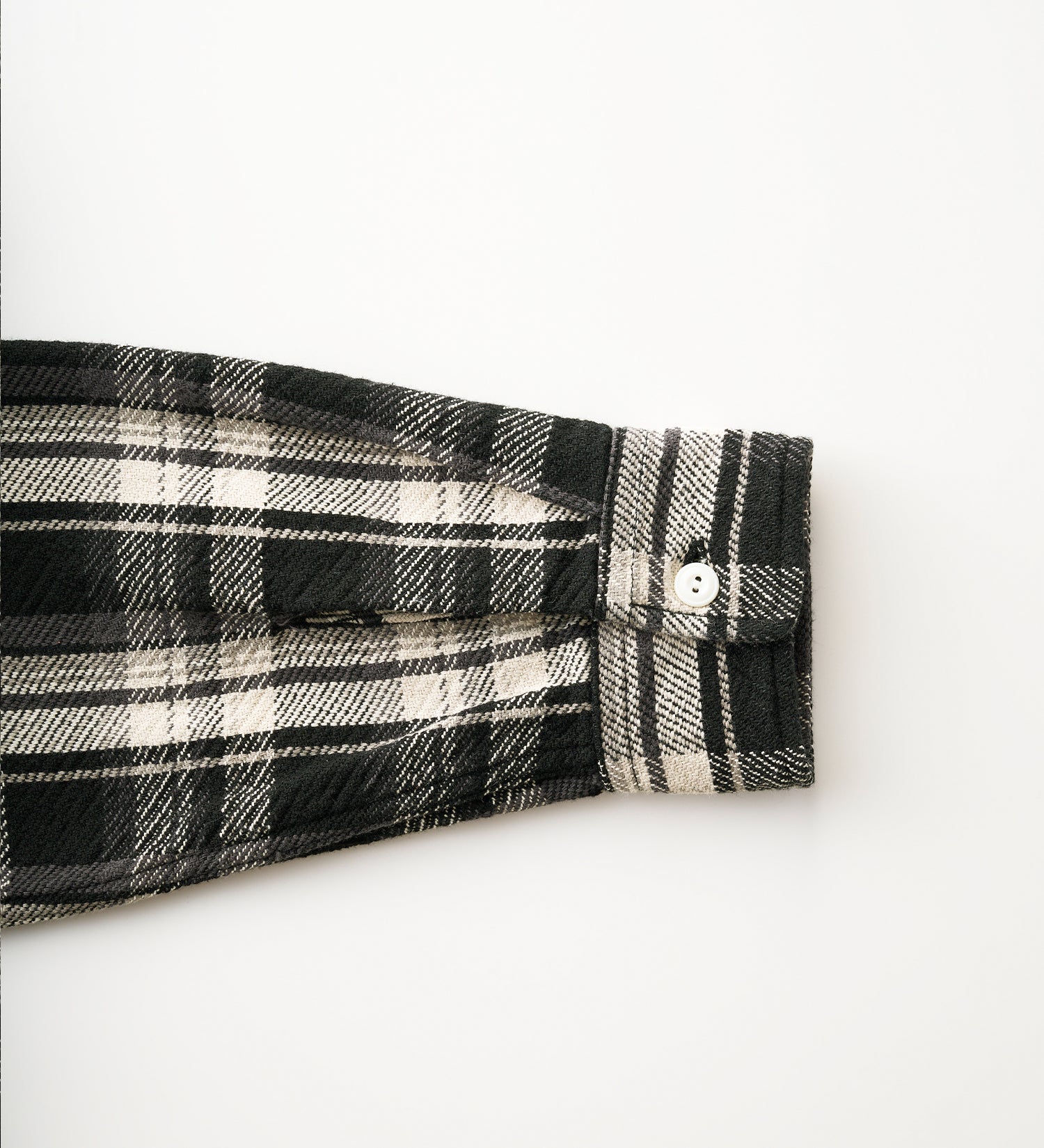素材は3本の糸を引き揃えゆっくりと織り上げた柔らかい肌触りのツイルチェックを使用。