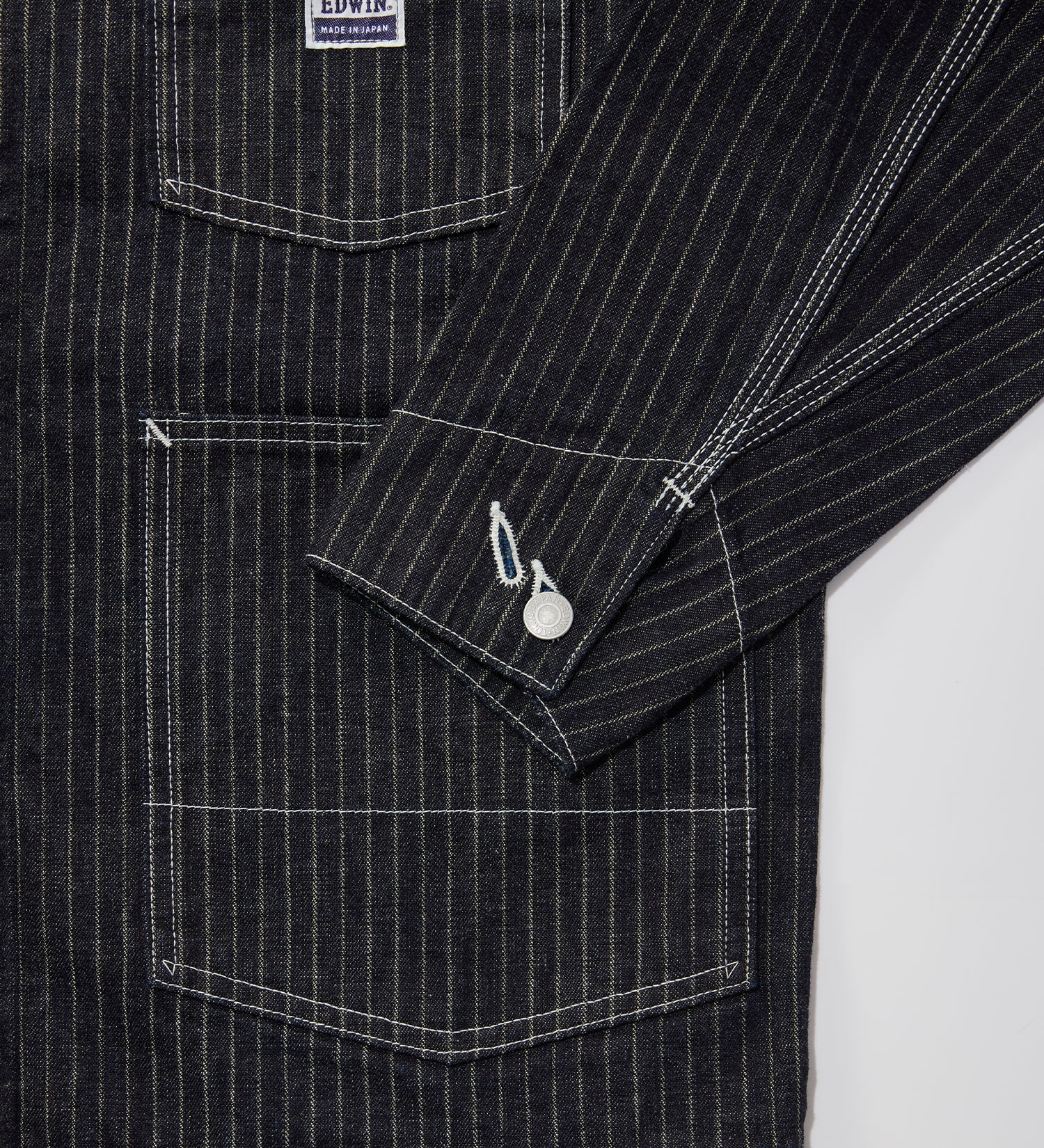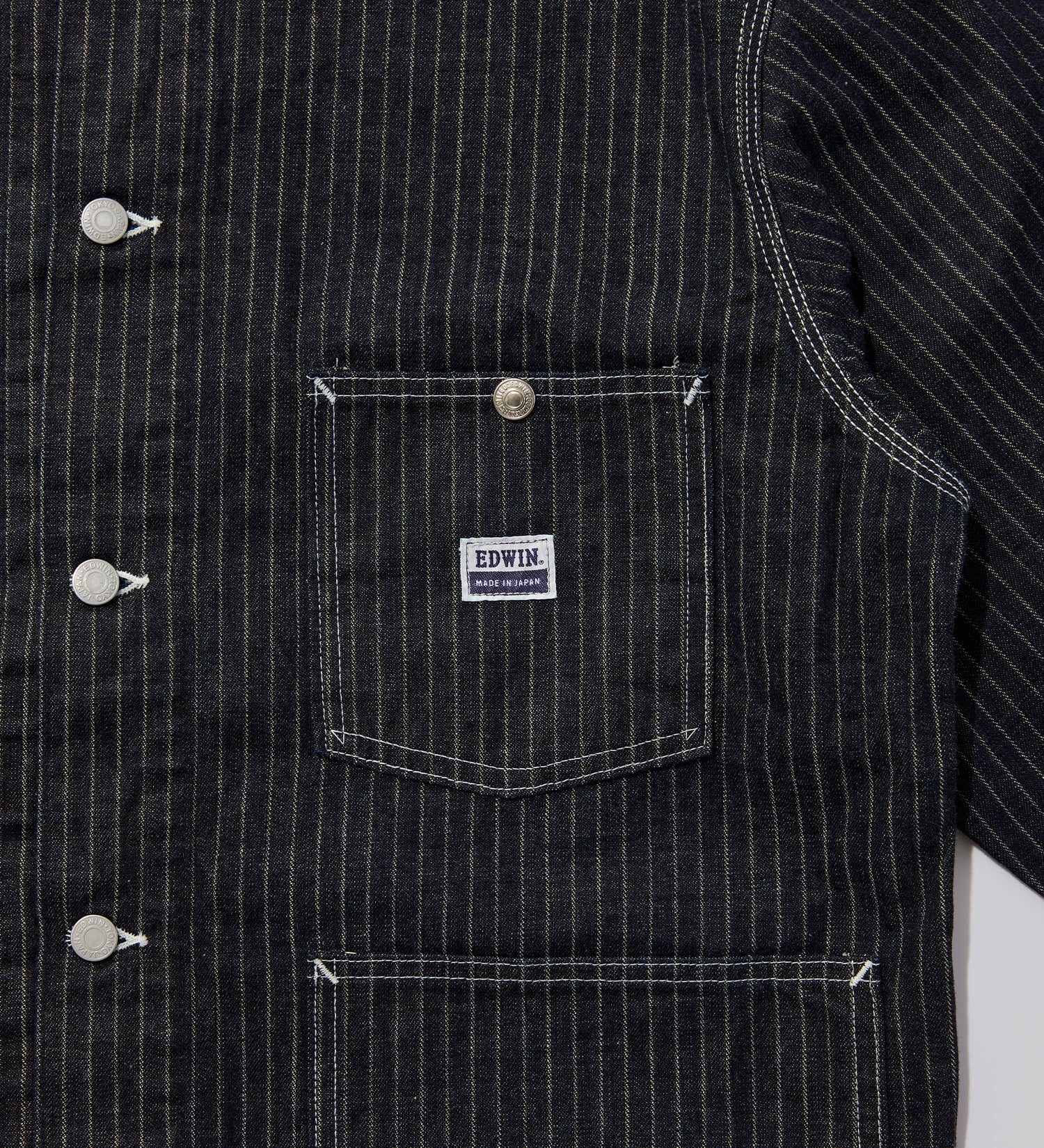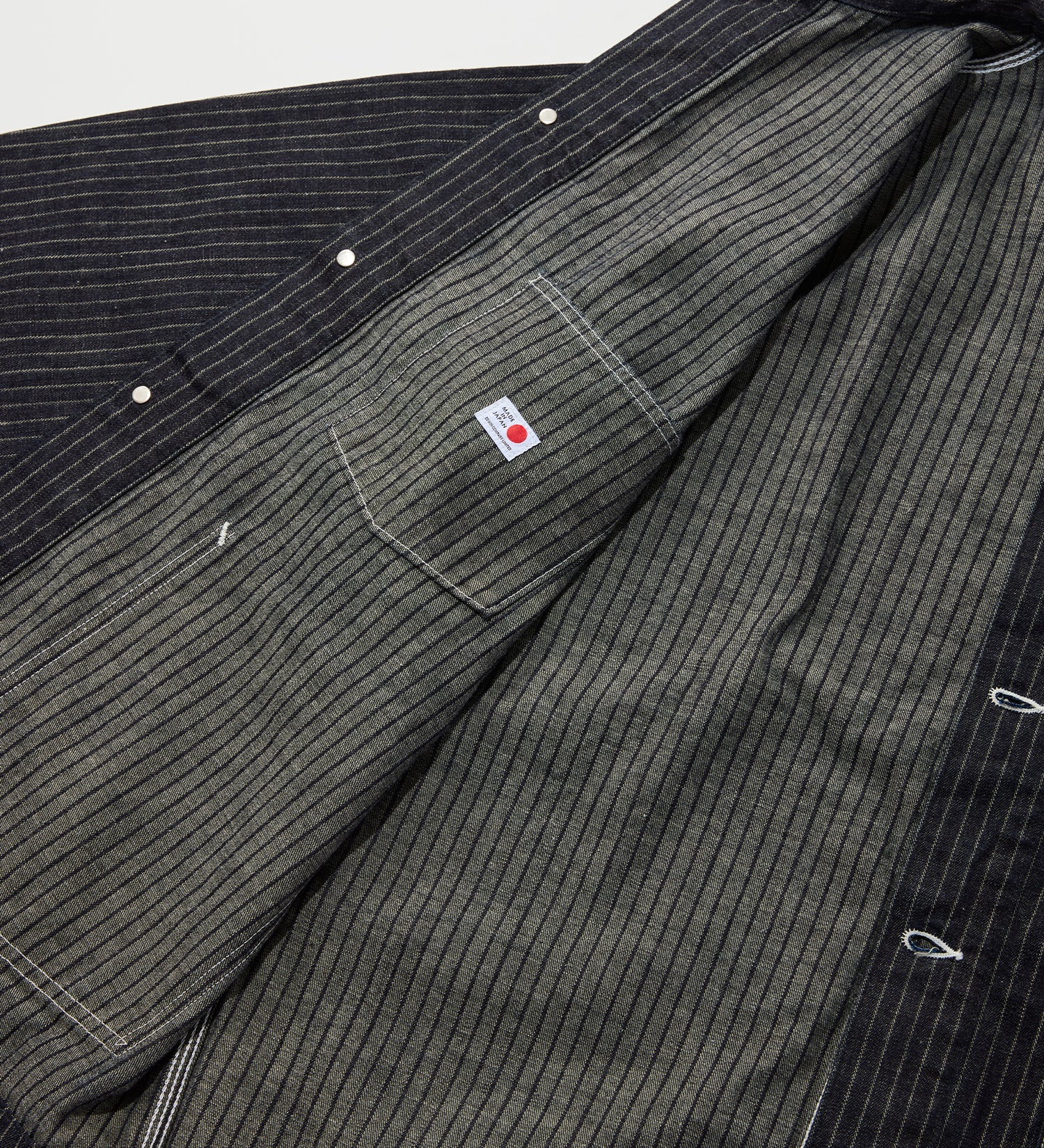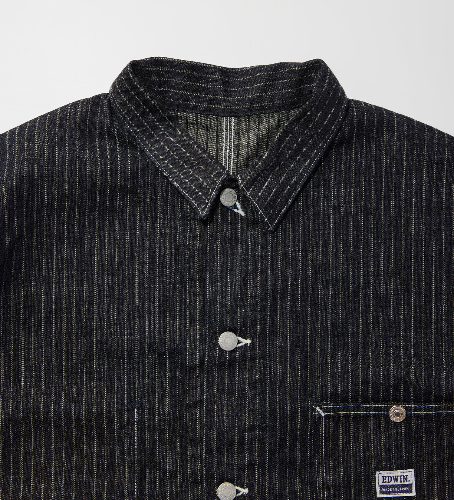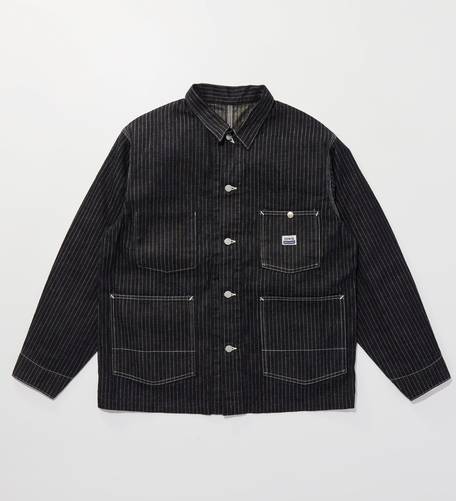 コンセプトショップ定番のカバーオールをベースに11オンスのストライプドビーデニムを使用したジャケット。