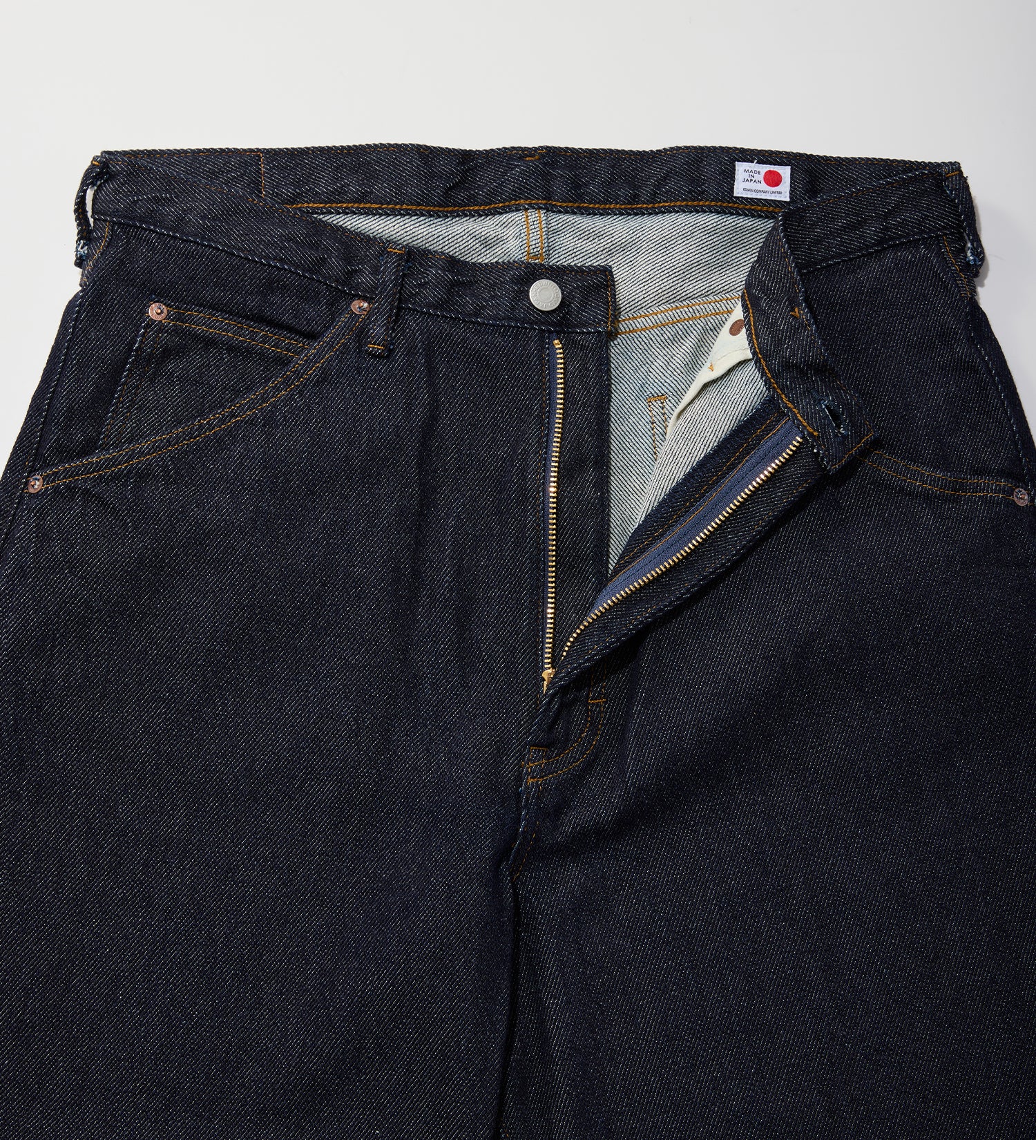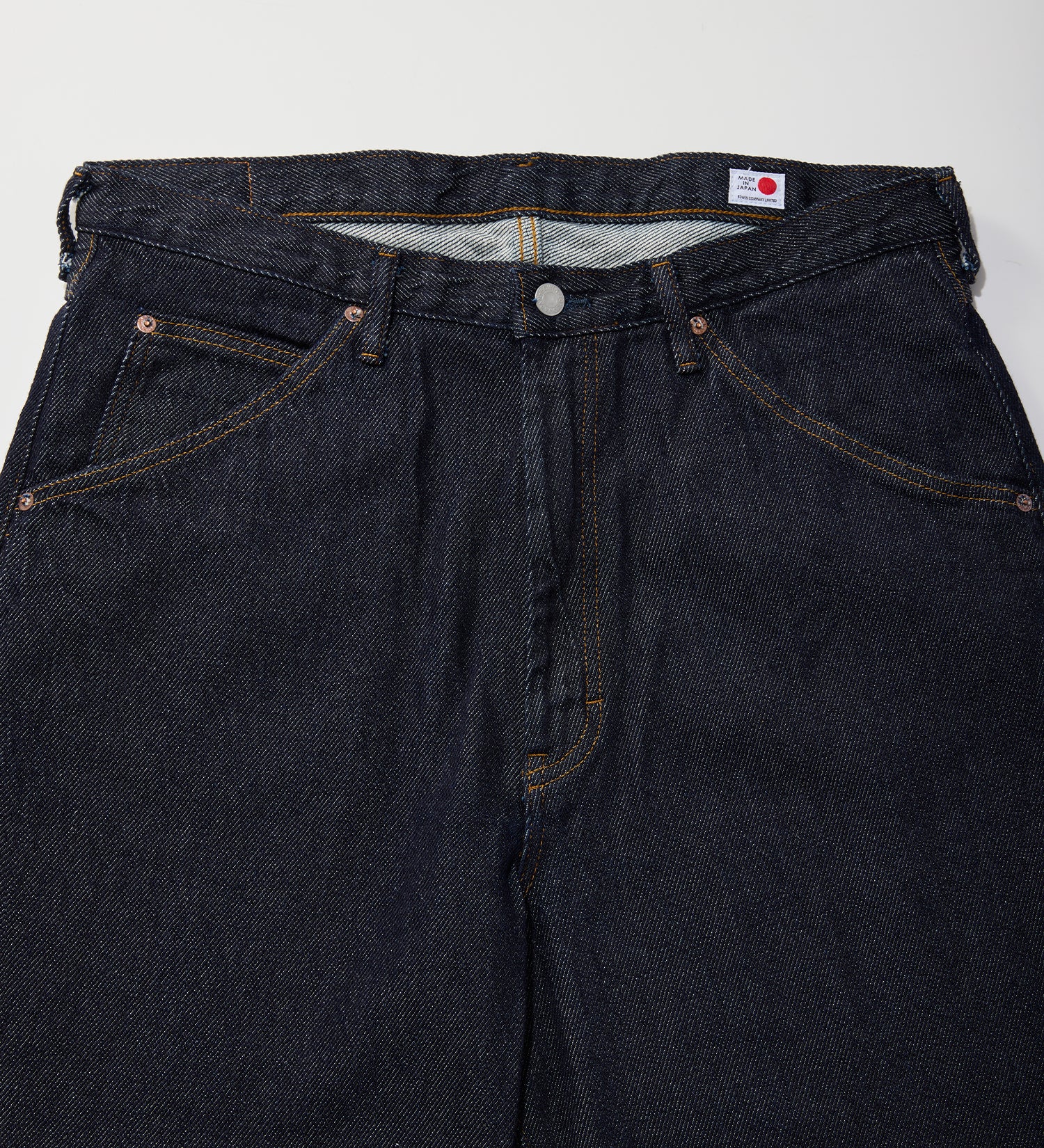 強撚糸を深いインディゴで染めた経糸を、変則的な5/1の右綾で織ることで生まれるドライ&ソフトな風合いが特徴の11.5ozデニム。