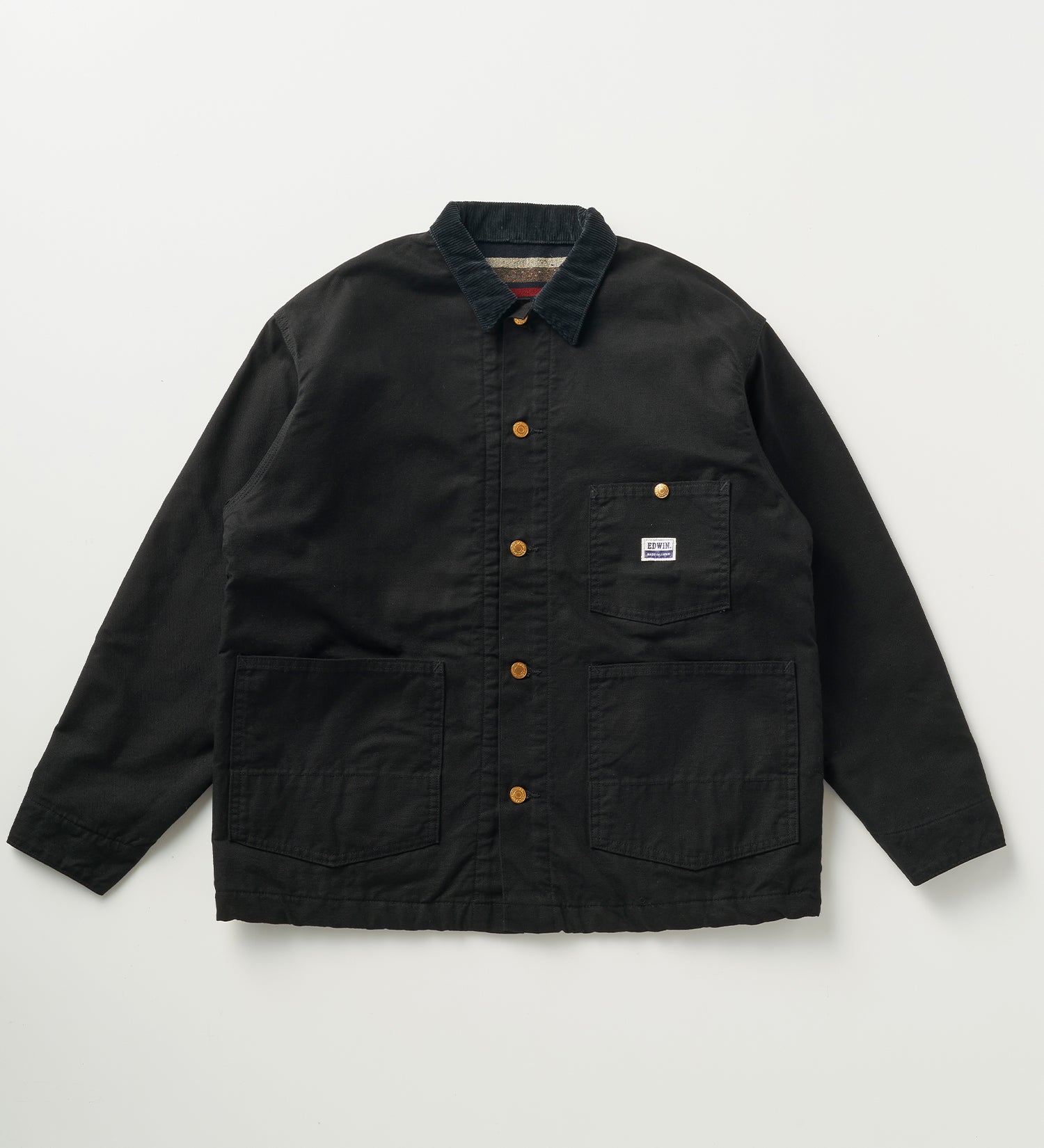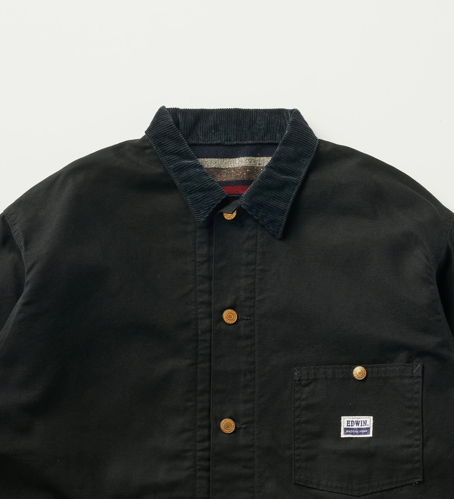 襟のコーデュロイは硫化染めなので身頃と共に色落ちを楽しめる。