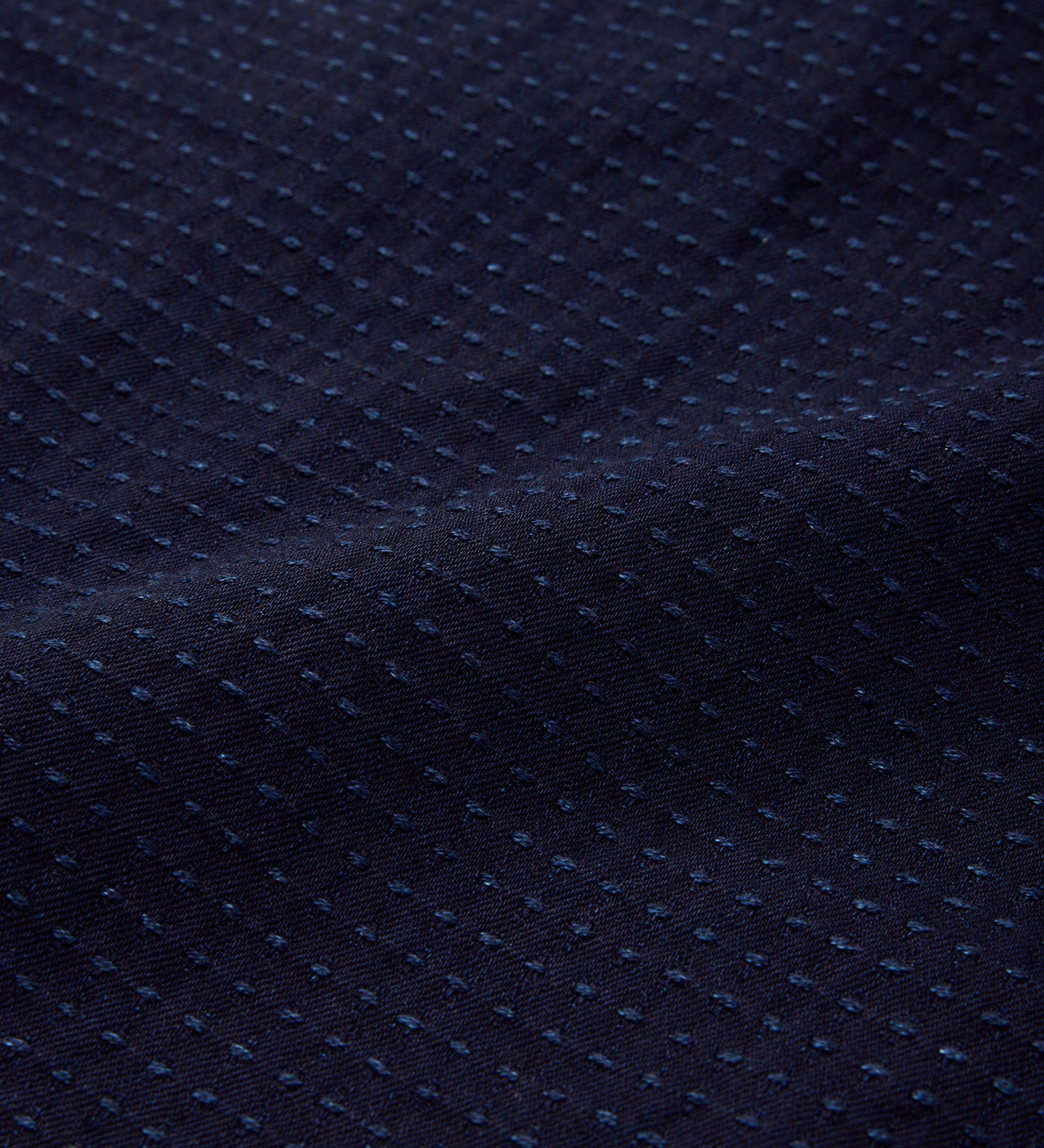 経糸・緯糸ともにインディゴで染められているため、より深い青さが特徴。