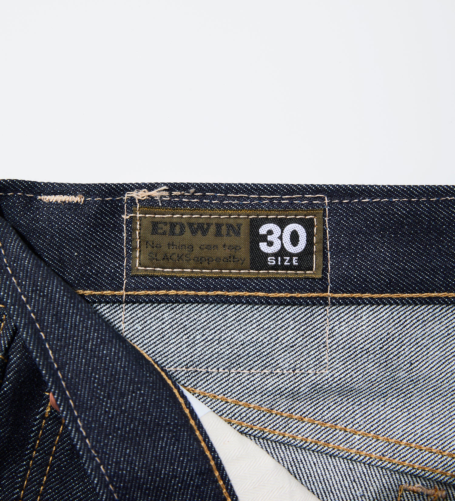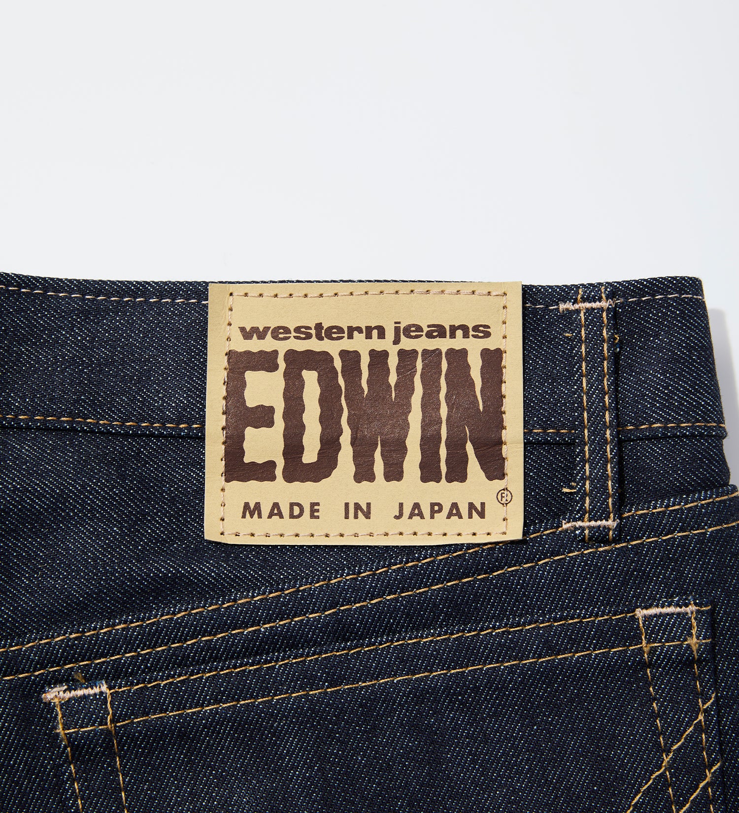 通称「クッキーロゴ」と呼ばれるロゴがプリントされたラベルのジーンズで、エドウイン本社のアーカイブ保管庫にも完全な状態で現存しているサンプルがなく、社員のなかでも長い間“幻”とされていたがエドウイン公式YouTubeチャンネルを見たコレクターの方から連絡があり、所有していた完全な状態に近い「クッキーロゴ」のジーンズを特別に寄贈いただいた。